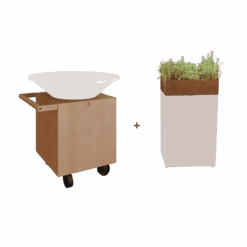 OFYR Island Black PRO 100-100 Vuurkorf – Barbecue Met Meubel En Plank Van Donkergrijs Keramiek