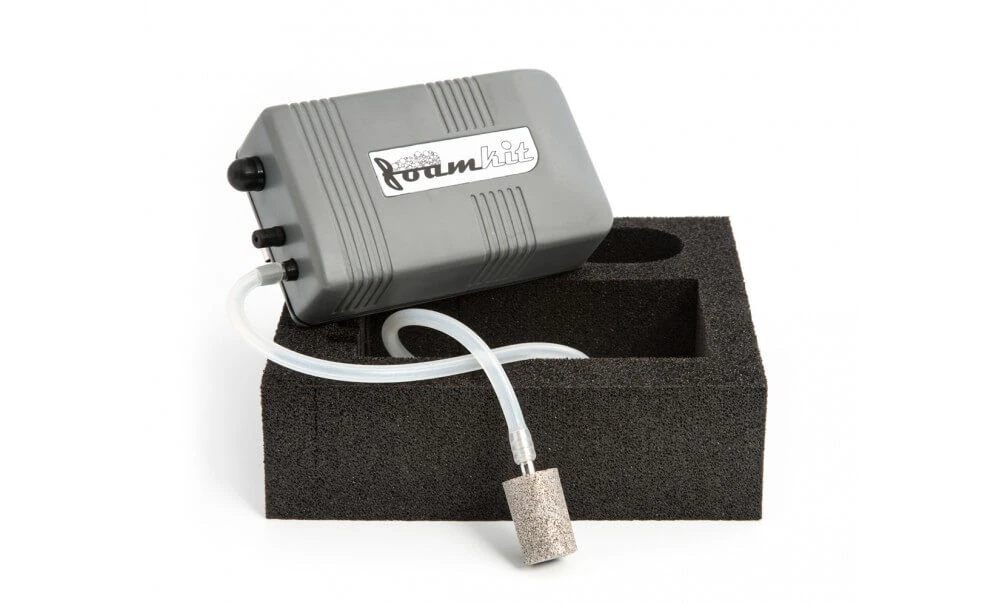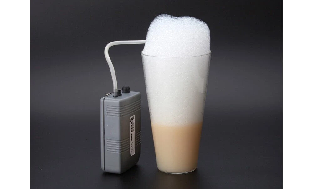 Met de 100% Chef Foam Kit Deluxe is het nog gemakkelijker om een foam (schuim) te maken op basis van soja lecithine of een andere emulgator. De Foam Kit werkt door een het uiteinde in een smalle beker met de op te schuimen vloeistof te doen. In een mum van tijd hebt u een stabiel schuim. Door de Foam Kit uit te schakelen of een aantal keer aan te doen kunt u zelf de hoeveelheid schuim bepalen.