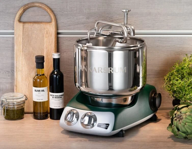 De groene Ankarsrum Assistent Original kneedmachine is vervaardigd uit gegoten aluminium en heeft een roestvrijstalen mengkom met een inhoud van 7 liter. De vernieuwde versie 6230 is uitgerust met een extra krachtige 1500 Watt sterke motor. De machine heeft een capaciteit voor het kneden van 5 kg deeg of 1,5 liter vloeistof. Tevens is de machine met accessoires om te bouwen tot een veelzijdige keukenmachine. De keukenmachine is: 40 x 27 x 36 cm (l x b x h).
