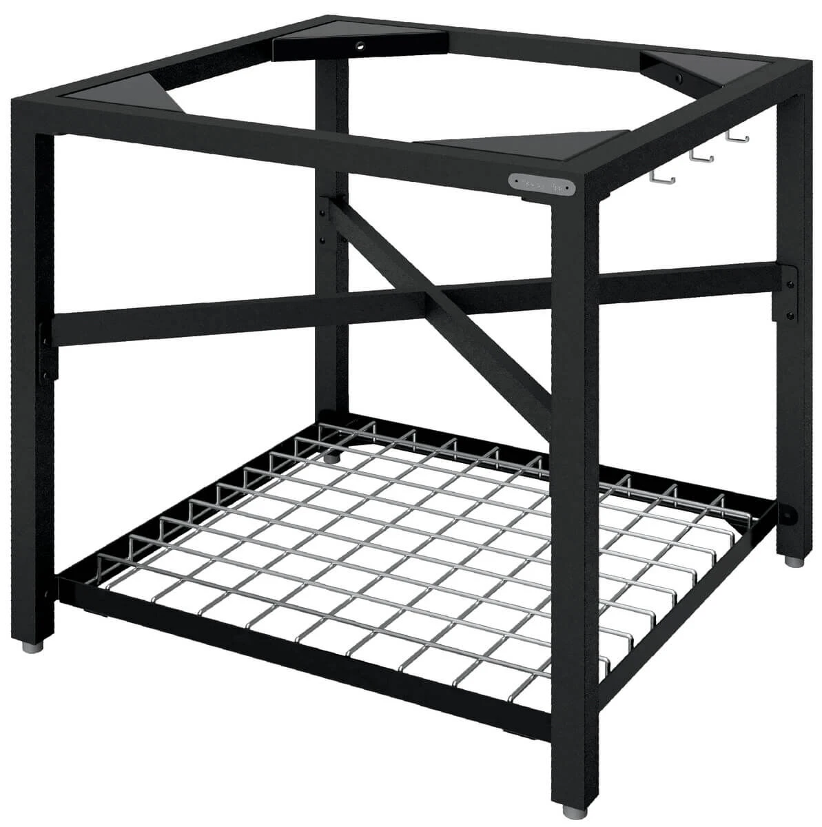 Het Big Green Egg Modular Outdoor Workspace Frame biedt een mooie oplossing om uw Big Green Egg barbecue in de tuin te gebruiken. Het frame Is zo gemaakt dat een Big Green Egg Extra Large er precies in past. Het frame zelf heeft een lengte en breedte van 76 cm en een hoogte van 77 cm. Het verschil in hoogte tussen de middelste en bovenste plank is 30 cm. De bovenzijde van het frame en de poten zijn gemaakt van aluminium, het onderste frame en het kruis waarop de Big Green Egg rust zijn gemaakt van staal voor extra sterkte.