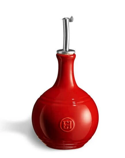 Met de Emile Henry azijnfles bewaart en serveert u azijn op zeer luxe wijze. De kan heeft een inhoud van 400 ml, is gemaakt van rood keramiek en voorzien van een roestvrijstalen schenktuit. Gebruik de Emile Henry azijnfles voor het doseren en serveren van azijn.
