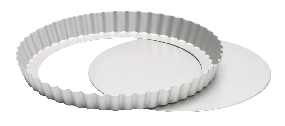 De Fat Daddio’s quichevorm is gemaakt van geanodiseerd aluminium en heeft een diameter van 24 cm. De vorm heeft een geribbelde rand en een uitneembare bodem, voor een goede lossing van de inhoud. Met de bakvorm bakt u quiche en taart.