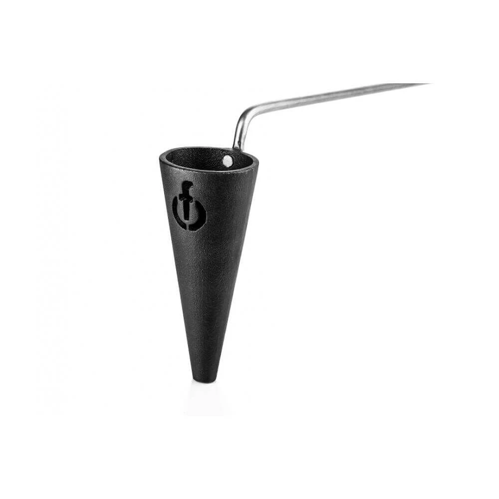 De Forged Flambadou is een gietijzeren kegel die een grote opening heeft aan de bovenkant en een kleine opening aan de onderkant, en is bevestigd aan een lang handvat van hoogwaardig staal met een mooi olijfhouten heft. Gebruik de Flambadou om een unieke beleving te creëren voor uw gasten.