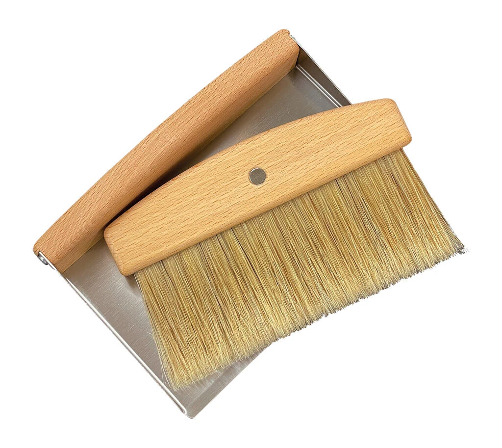 Gebruik de tafel stoffer en blik voor het opvegen van kleine kruimels of stof. De stoffer en blik zijn gemaakt van hoogwaardige materialen en gaan lang mee.