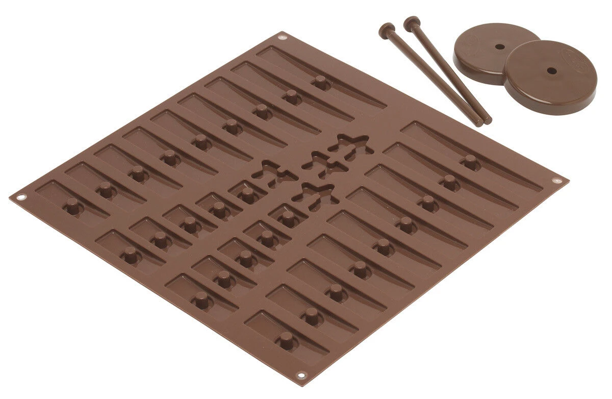 Met de 3d chocolade kerstboom mal kunt u zelf twee 3D chocolade-kerstbomen maken. De vierkante mal is opgedeeld in verschillende vormpjes die samen een kerstboom kunnen vormen. In de vormen giet u gesmolten chocolade- of koekjesdeeg om de verschillende elementen van kerstboom te maken. Eenmaal uitgehard of gebakken verwijdert u de vormen eenvoudig uit de siliconen bakvorm. Vervolgens stapelt u deze op de kunststof houder tot er een 3D kerstboom ontstaat.