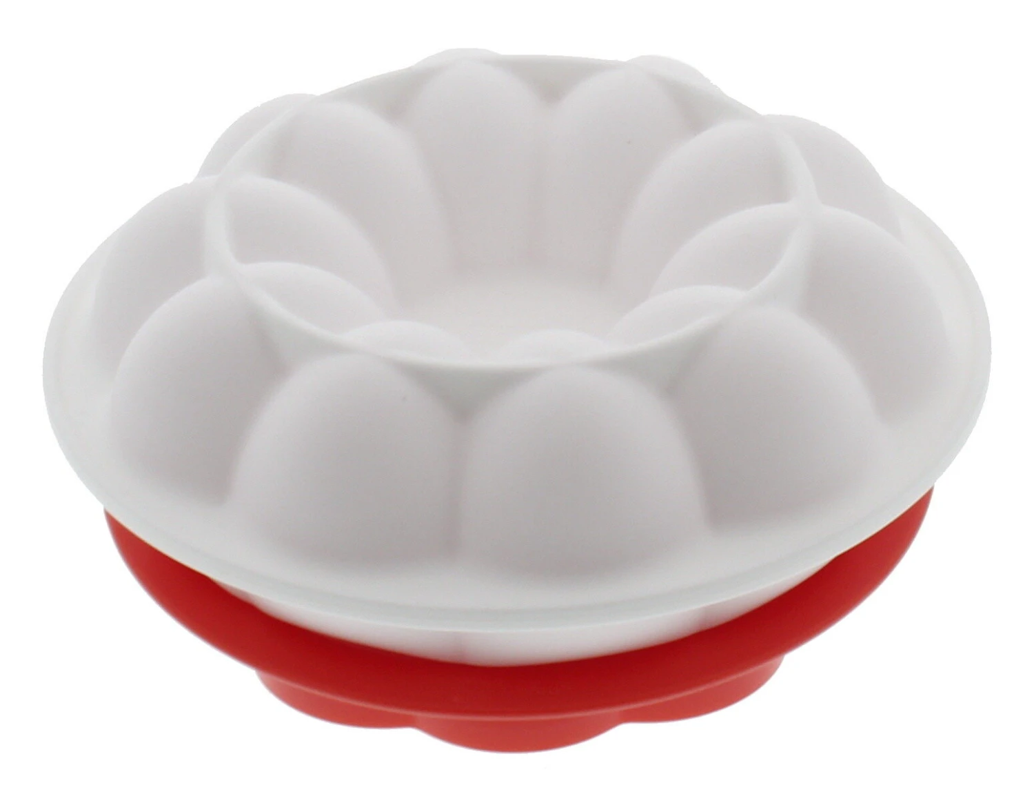 Behalve de siliconen vorm zelf zijn er nog een uitsteker en een glaceermal meegeleverd. Gebruik de uitsteker voor het uitsteken van een tussenlaag en basis uit bijvoorbeeld koek of biscuit. De glaceermal stelt u in staat om de taart te glaceren in twee verschillende kleuren met een strakke scheiding ertussen.