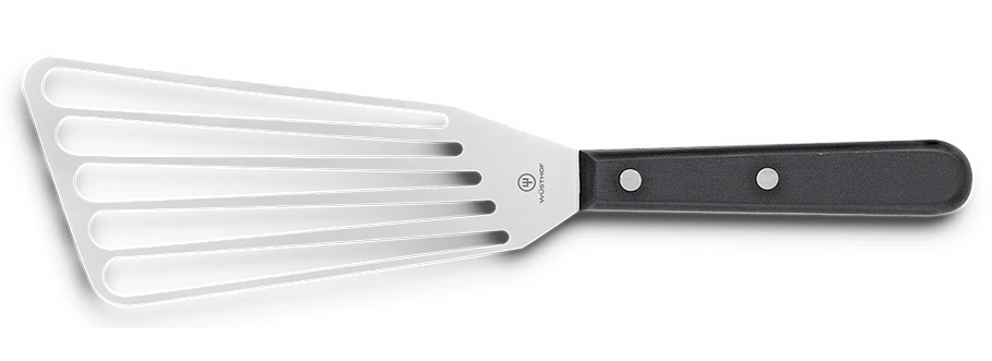 De Wüsthof Gourmet spatel is vervaardigd uit roestvrij staal en kunststof heeft een lengte van 17 cm. Het blad is voorzien van 5 sleuven waardoor vet en vloeistoffen kunnen weglopen. Gebruik de keerspatel voor het oppakken en keren van ingrediënten in de pan.
