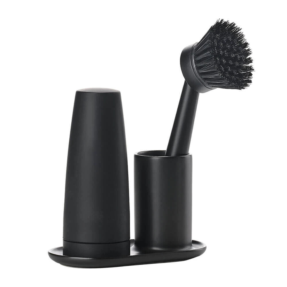 Met de zwarte Zone Denmark Singles afwasset heeft u alles bij de hand voor de dagelijkse schoonmaak van uw keuken of aanrecht. De set is vormgegeven in een monochrome, zwarte kleur en past op ieder aanrecht. Met een compacte afmeting van 15 x 8,1 cm heeft u alle onderdelen compact bij elkaar.